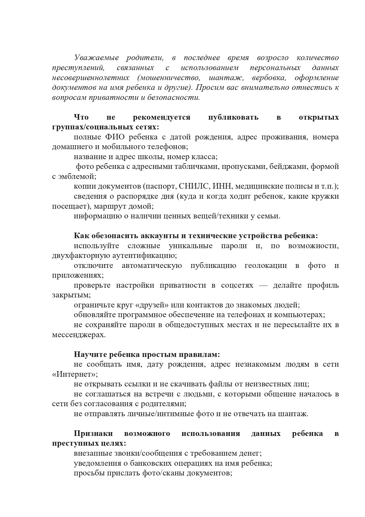 http://www.sc223.kirov.spb.ru/22-informatsiya/ob-yavleniya/638-pamyatka-po-voprosam-privatnosti-i-bezopasnosti-detej.html#sigFreeId1b57956c3d